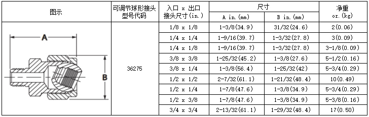 36275系列可调球形接头-产品规格: